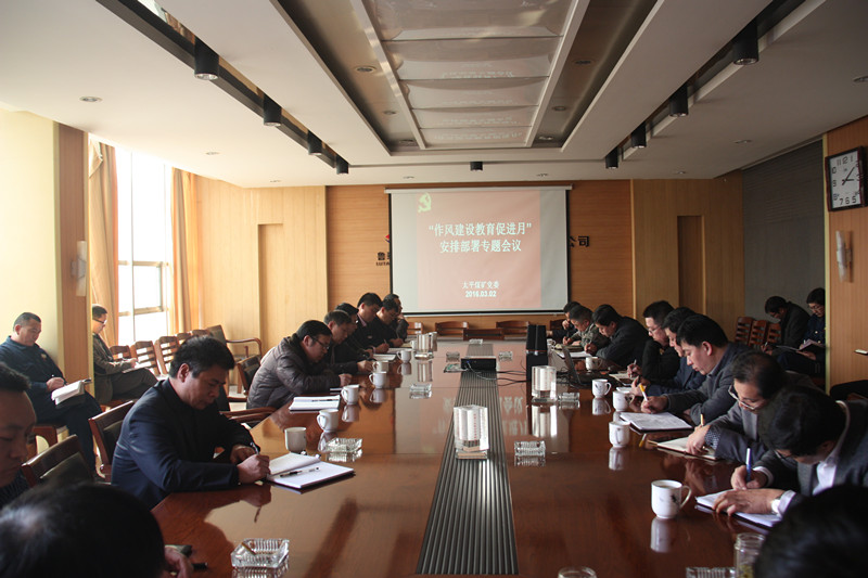 3月2日下午,矿在机关楼三楼会议室召开"作风建设教育促进月"活动安排部署专题会议,与会人员共同学习了关于加强作风建设的一系列文件精神,对矿"作风建设教育促进月"活动进行动员部署。矿长兼党委副书记张玉标主持会议,党委书记汤保民作动员部署。副总以上领导、各党支部书记、政工科相关负责人、工会办公室相关负责人参加会议。