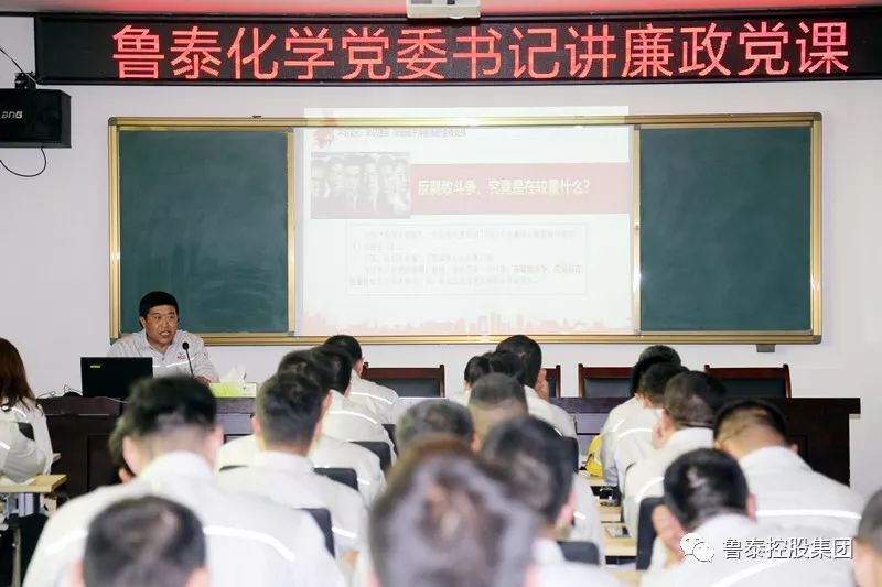 为进一步深化党风廉政建设,强化党员干部责任担当意识,5月24日上午,鲁泰化学党委书记、董事长张玉标在行政楼四楼培训中心教室为80余名党员干部上了一堂深刻、生动的廉政党课。这也是鲁泰化学贯彻落实集团公司党委、纪委党风廉政建设工作部署,扎实推进全面从严治党向基层延伸、向纵深发展的一次特色教育活动。