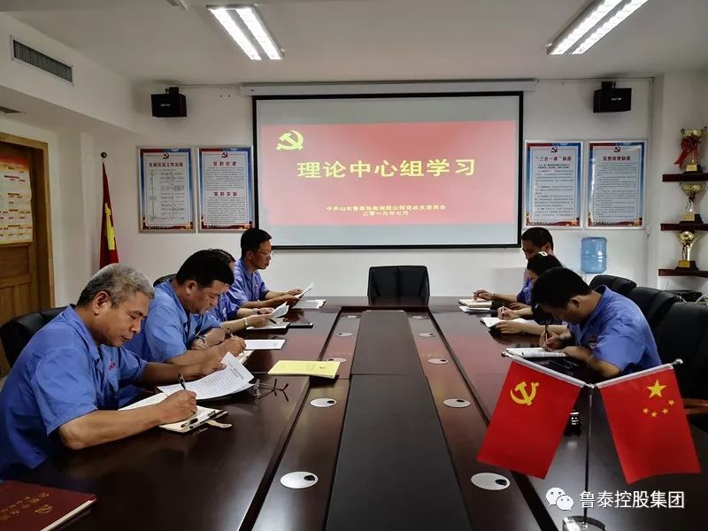 7月24日,鲁泰热电党总支在党员活动室召开理论学习中心组集体学习会议,该公司党总支书记、总经理王允来主持会议,公司领导班子、各支部委员参加会议。
