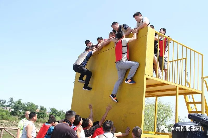 “毕业墙”,又称逃生墙,该活动要求整个团队人员,在没有任何器材的情况下共同努力翻越 4.5米高的墙壁。在该活动中全体队员甘为人梯、团结协作、众志成城,仅用时9分多钟就完成了50多人的攀登任务,将红旗高高飘扬在4.5米的高台之上,在队友们胜利的欢呼声中,本次培训班划上了圆满句号