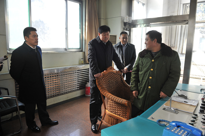 张胜明一行先后来到鹿洼煤矿生产调度室、井口等候室、副井绞车房,询问了节日停产期间井上、井下人员的值班情况。张胜明与坚守在工作岗位的工作人员握手问候,向他们表示感谢,并致以节日的问候。