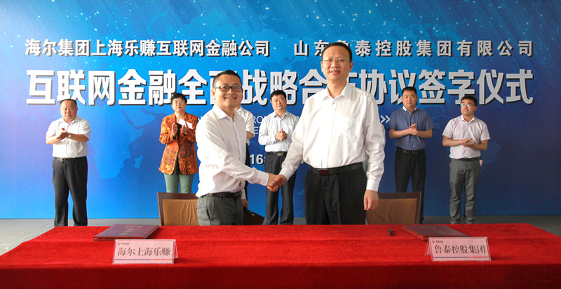 李合军在致辞中表示,鲁泰控股集团"十三五"发展规划确立了未来的发展愿景,就是要努力建设"绿色、创新、卓越、幸福"的新鲁泰,成为绿色发展的践行者,轻资产运营的示范者,新兴产业的引领者。鲁泰控股集团将在保持传统制造业良性发展的基础上,积极发展新兴产业,全面推进鲁泰物流公司电子商务平台,与实力雄厚的互联网金融机构合作,开展互联网金融服务,拓宽集团服务板块发展领域;全面推进第三方支付的合作,实现鲁泰物矿网在线交易,闭合电商平台线上业务链条,为会员单位提供线上交易服务。海尔集团上海乐赚互联网金融公司作为海尔集团的全资子公司,所拥有的快捷支付平台和海融易财富管理平台,融合金融行业优势资源,展现出了强劲的发展势头,成为了新一代投资平台的革新者和领先者。山东鲁泰控股集团和海尔集团上海乐赚公司的这次合作,实现了鲁泰物矿网B2B交易平台与互联网金融的有效对接与融合,不仅能够完善鲁泰物矿网在线交易功能,推动线上贸易的顺利开展,而且能够通过双方合作在鲁西南地区开展互联网供应链金融服务,为中小企业提供新的融资渠道,实现了强强联合,优势互补。协议签订后,我们将按照约定,配合上海乐赚公司在鲁泰物流公司设立办事处,共同加快推进在线支付和互联网金融业务的开展,依托集团物资集中采购的优势,尽快提升鲁泰物矿网线上交易量,打造新的经济增长点。