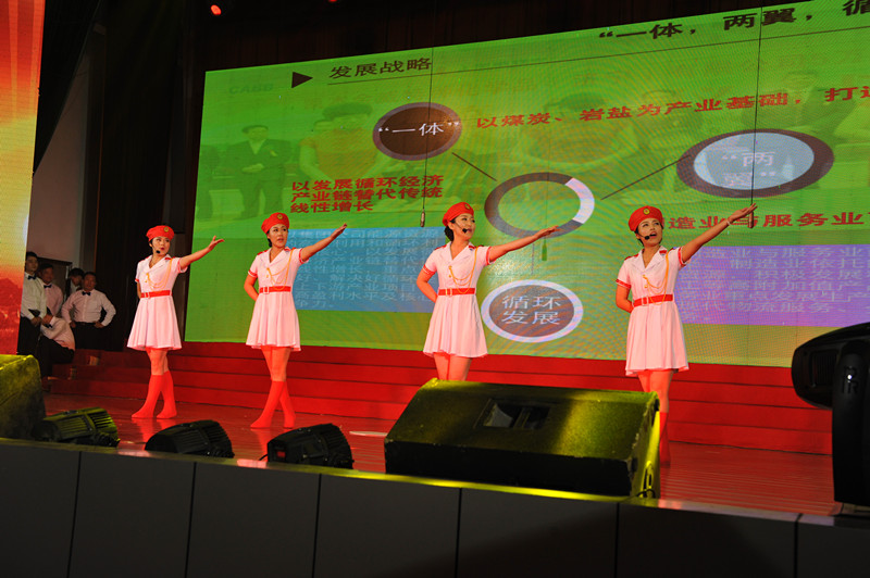 欢快的旋律,激情的演绎。演出在大鼓表演《太平之韵》中开始,金灿的舞衣加上铿锵的鼓声,敲出了气势,鼓出了干劲;小合唱《抓好两个安全、助推企业发展》,用《三大纪律八项注意》的旋律唱出了鲁泰人抓好生产安全和政治安全两个安全的决心;小品《朋友之合作共赢》,用幽默的表演诠释了集团"诚信规范、合作共赢"经营理念;歌伴舞《祖国万岁》,曼妙的舞姿,深情演唱,表达了鲁泰人对祖国的美好祝愿;乐诗朗诵《我是中国煤亮子》,深情讴歌了煤矿工人采掘光和热的煤亮子精神;音乐快板《赞我鲁泰续新篇》,八位女工歌载舞,用欢快的快板热情赞美了集团的改革发展成就;相声《幸福鲁泰人》,用相声的形式对企业岗位创效、修旧利废、节支降耗等做法进行了阐述,表现了鲁泰人共建幸福鲁泰,共享幸福生活的美好情操;乐队演奏《绿野仙踪》激情四射,展现了集团年轻人的活力;小品《牵挂》,表现了鲁泰人扎根陕北,打造托管服务品牌的决心;舞蹈《映山红》,用优美的肢体语言展现了人民对党的无限热爱;双簧《酒后的不该》,用夸张的表演提醒职工喝酒上班的严重后果;歌曲《圆梦新鲁泰》豪情满怀,达了鲁泰人圆梦新鲁泰的幸福与豪迈;小品《家》,展现了职工以企业为家,与企业同呼吸、共命运,共克时艰、共渡难关的美好感情;音乐快板《党在我心中》,唱出了对党和企业一颗炽热的心;改编歌曲《我的鲁泰我的爱》,集中表现了集团发展成果和对企业的热爱;大合唱《祖国不会忘记》、《在灿烂阳光下》歌声优美动人,舞台效果气势磅礴,将整场演出推向高潮。
